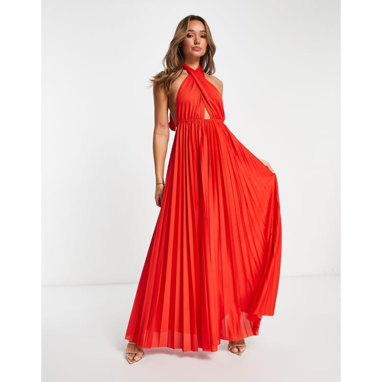 Product Item: Asos design halter tie shop neck maxi dress in pleat