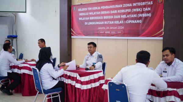 GBNNews.net,Jakarta – Seleksi Pembentukan Tim Kelompok Kerja (POKJA) merupakan Representasi salah satu bentuk Komitmen Rumah Tahanan Negara (Rutan) Kelas I Cipinang dalam membangun Zona Integritas (ZI) menuju Wilayah Bebas dari Korupsi (WBK) dan Wilayah Birokrasi Bersih dan Melayani (WBBM), Rabu (24/1).