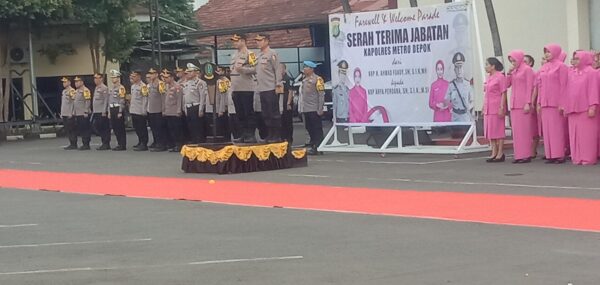 GBNNews.net,Depok,– Polres Metro Depok laksanakan kegiatan serah terima jabatan (Sertijab) Kapolres, dari Kombes Pol. Ahmad Fuady digantikan oleh Kombes Pol. Arya Perdana dipelataran Polres Metro Depok dengan tradisi upacara Pedang Pora.