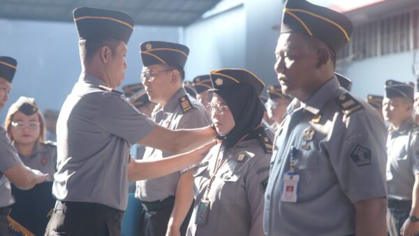 Kepala Rutan Cipinang Sematkan Tanda Kenaikan Pangkat dan Pelepasan Masa Purna Tugas Pegawai Terbaik