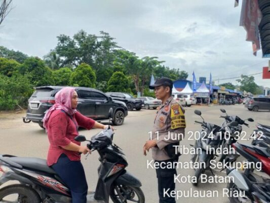Hal ini di tunjukkan Aipda Nanda menghimbau pengendara yang berada pada tempat keramaian di kawasan Pasar Tradisional Tiban Center Kecamatan Sekupang Kota Batam, Selasa (11/06).