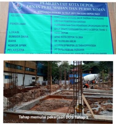 Untuk pekerjaan pembangunan Depok Open Space Tahap ke 2 menganggarkan dana sebesar Rp.10.850.000.0000.- dari dana APBD kota Depok Tahun 2024,yang dikerjakan oleh PT Duta Pribumi Perkasa dan konsultan pengawas PT Reka Cipta Kreasindo dengan masa waktu pekerjaan selama 180 hari kalender.