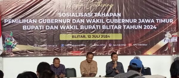 GBNNEWSnet,BLITAR RAYA -Pemilihan Kepala Daerah atau yang biasa disebut Pilkada dan Pemilihan Gubernur atau Pilgub akan kembali digelar pada tahun 2024. Seperti yang kita ketahui, tahapan pilkada dan pilgub merupakan serangkaian kegiatan yang harus dilalui agar pemilihan dapat berlangsung dengan lancar. Oleh karena itu, sosialisasi tahapan pilkada dan pilgub sangat penting dilakukan agar masyarakat memahami dan terlibat dalam proses pemilihan tersebut.Acara yang diadakan Gedung KPU – Garum Kabupaten Blitar dihadiri Ketua KPU dan Komosioner KPU dan awak awak media pada tgl 12 Juli 2024.