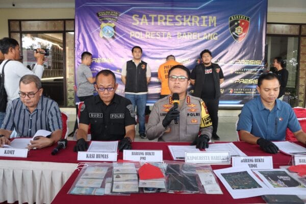 Polresta Barelang kembali menunjukkan komitmennya mendukung Program 100 Hari Asta Cita Presiden Republik Indonesia dengan memberantas perjudian online. Kapolresta Barelang, Kombes Pol H. Ompusunggu, SIK, M.Si, didampingi Kasat Reskrim AKP Debby Tri Andrestian, SIK, MH, dan Kasihumas Iptu Budi Santosa, SH, menggelar konferensi pers di Lobby Polresta Barelang, Sabtu (16/11/2024).