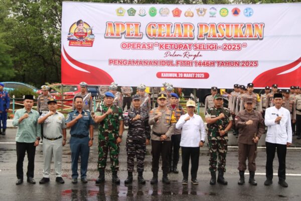 GBNnews.net–Karimun, 20 Maret 2024 – Jelang perayaan Idul Fitri 1446 H, Polres Karimun menggelar Apel Gelar Pasukan Operasi Ketupat Seligi 2025 di Panggung Rakyat Sri Kemuning, Kelurahan Teluk Air, pada Rabu (20/3) sore. Apel ini bertujuan untuk memastikan kesiapan personel dalam mengamankan arus mudik serta menjaga ketertiban selama perayaan Lebaran.