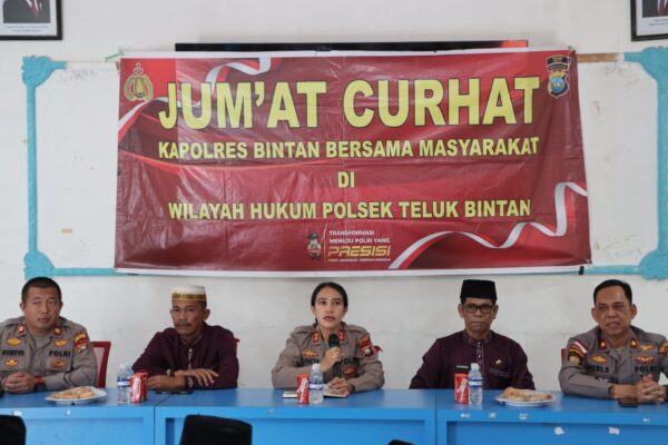 GBNnews.net–Bintan, Kepri – Awal bulan Kapolres Bintan laksanakan kegiatan Jumat Curhat Kamtibmas bersama masyarakat Desa Penaga Kecamatan Teluk Bintan yang dilaksanakan di aula Kantor Desa Penaga pada Jumat pagi (2/5/2025).