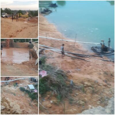 Begitu juga di lokasi aktivitas tambang pasir ilegal tersebut mereka menggunakan mesin penyedot pasir sebanyak 2 unit serta puluhan tenaga kerja sebagian tukang sekop serta tukang hendel mesin.