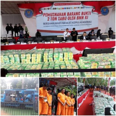 GBNnews.net–BATAM,-Dalam rangka membuktikan akuntabilitas dan transparansi dalam upaya pemberantasan narkoba, Badan Narkotika Nasional Republik Indonesia (BNN RI) sebagai anggota Desk Pemberantasan Narkoba di bawah koordinasi Kementerian Koordinator Bidang Politik dan Keamanan, menggelar pemusnahan barang bukti 2 ton sabu, di Alun-Alun Engku Putri, Batam, Kepulauan Riau, pada Kamis (12/6).