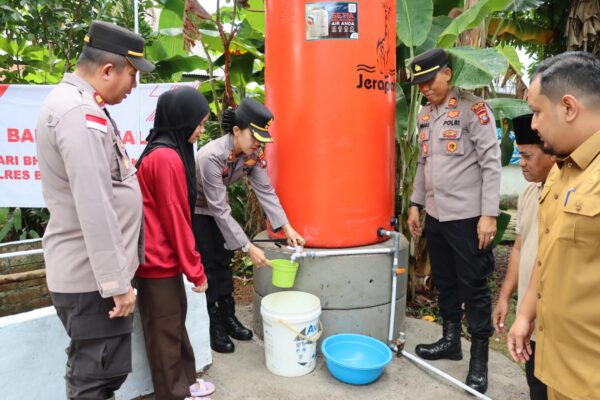Kapolres Bintan AKBP Yunita Stevani, S.I.K., M.Si. di dampingi Kabaglog, Kapolsek Teluk Bintan dan Personel Teluk Bintan, memberikan bantuan sosial berupa pembangunan sumur yang di lengkapi dengan mesin pompa air, Tandon Air dan Fasilitas Lainnya untuk memudahkan masyarakat dalam mengaksesnya air bersih.