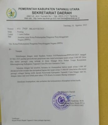 Ternyata di Pemkab Tapanuli Utara , sekitar 1,5 ha lahan tanah yang dipinjam pakai oleh Pemkab Tapanuli Utara selama 31 tahun dan sudah dikosongkan sejak tahun 2000 s/d 2025 kepada pemiliknya ataupun ahli warisnya , secara sepihak Bupati Tapanuli Utara pada saat itu Drs.Nikson Nababan memaksakan kehendak dan tanpa alas hak memasukkan status tanah masuk menjadi Inventaris milik Daerah tanpa dapat membuktikan dasar hukum atas tanah tersebut ungkap Ganda Tampubolon dalam siaran Persnya .