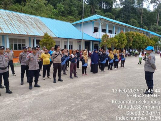 GBNnews.net – Polsek Sekupang bersama Sat Intelkam Polresta Barelang melaksanakan kegiatan gotong royong dalam rangka mewujudkan lingkungan sekolah dan tempat ibadah yang bersih, nyaman, dan asri di SD 010 Kelurahan Tiban Lama serta Masjid Jamal Jamil, Kecamatan Sekupang, Kota Batam. Kegiatan dimulai sekira pukul 07.00 WIB hingga selesai, dipimpin langsung oleh Kapolsek Sekupang Kompol Tua Hippal Sirait, S.H., M.H., Jumat, (13/02/2026).